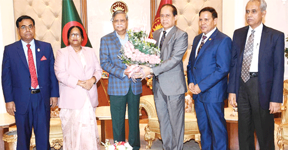 রাষ্ট্রপতি মো. সাহাবুদ্দিনের সঙ্গে সৌজন্য সাক্ষাৎ করেছেন নির্বাচন কমিশনের (ইসি) সদস্যরা। গতকাল সোমবার (১৯ জুন) বঙ্গভবনে দুপুর সাড়ে ১২টায় প্রধান নির্বাচন কমিশনার (সিইসি) কাজী হাবিবুল আউয়ালের নেতৃত্বাধীন কমিশন এ সাক্ষাৎ করে। সিইসির সঙ্গে নির্বাচন কমিশনার মো. আহসান হাবিব খান, বেগম রাশেদা সুলতানা, মো. আলমগীর ও ইসি সচিব মো. জাহাংগীর আলম উপস্থিত ছিলেন। মো. সাহাবুদ্দিন বাংলাদেশের ২২তম রাষ্ট্রপতি নির্বাচিত হওয়ার পর ইসির এটিই ছিল প্রথম সৌজন্য সাক্ষাৎ। ইসি সদস্যরা নির্বাচনসহ নানা ইস্যুতে রাষ্ট্রপতির সঙ্গে আলোচনা করেন। বঙ্গভবনে তারা ৪৫ মিনিটের মতো অবস্থান করেন। সাক্ষাৎ শেষে নির্বাচন কমিশনার মো. আহসান হাবিব খান বলেন, রাষ্ট্রপতিকে আমরা অভিনন্দন জানিয়েছি। এটা ছিল সৌজন্য সাক্ষাৎ।