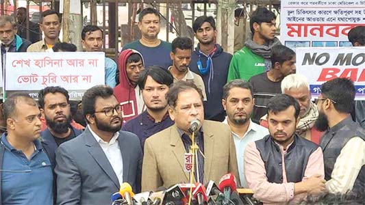 ৭ই জানুয়ারি ভোট নয়, ফ্যাসিবাদের পতন দিবস বলে ক্ষমতাসীনদের প্রতি হুঁশিয়ারি উচ্চারণ করেছেন গণঅধিকার পরিষদের আহ্বায়ক ড. রেজা কিবরিয়া। গতকাল শনিবার সকালে জাতীয় প্রেসক্লাবের সামনে গণঅধিকার পরিষদ একাংশের উদ্যোগে ‘আগামী ৭ই জানুয়ারি ভোট বর্জনের দাবিতে’ এক বিক্ষোভ সমাবেশে এ হুঁশিয়ারি উচ্চারণ করেন তিনি। বিক্ষোভ সমাবেশ শেষে পল্টন এলাকায় ভোট বর্জনের দাবিতে লিফলেট বিতরণ করেন গণঅধিকার পরিষদের নেতাকর্মীরা।