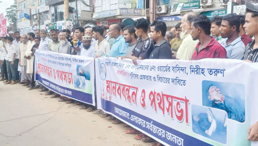 বড়লেখা উপজেলার বর্নি ইউনিয়নের বারহার গ্রামের দিনমজুর সালাহ উদ্দিন খুনের দুই মাস পরও হত্যাকান্ডের ক্লু উদ্ঘাটন ও প্রকৃত আসামি সনাক্ত করতে পারেননি মামলার তদন্ত কর্মকর্তা। সুষ্ঠ তদন্তের মাধ্যমে প্রকৃত অপরাধিদের সানক্তপূর্বক গ্রেফতার দাবিতে নিহেতর স্বজনসহ এলাকাবাসি রোববার দুপুরে বড়লেখা পৌরশহরে মানববন্ধন সমাবেশ করেছেন। পরে তারা থানার ওসির কাছে স্মারকলিপি প্রদান করেন। হত্যাকান্ডের শিকার দিনমজুর সালাহ উদ্দিনের ভাগ্নে ইকবাল জাফরের সঞ্চালনায় মানববন্ধন সমাবেশে বক্তব্য দেন স্থানীয় ইউপি সদস্য ছৈদ আলী, আব্দুল হালিম, ইউনিয়ন জামায়াতে ইসলামীর সভাপতি মুজিবুর রহমান, পৌর জামায়াতের সেক্রেটারী আব্দুস সামাদ, উপজেলা যুবদলের আহ্বায়ক আব্দুল কাদির পলাশ, নিহত সালাহ উদ্দিনের বাবা কমর উদ্দিন, চাচা পারভেজ আসুক, ছোটভাই আমির উদ্দিন, ভগ্নিপতি হাফিজ বেলাল আহমদ প্রমুখ। বক্তারা বলেন, ১৮ এপ্রিল রাত থেকে ১৯ এপ্রিল বিকেলের যে কোনো সময় নির্মমভাবে সালাহ উদ্দিনকে খুন করে রাতখাল নদীতে ফেলে দেয়া হয়। স্থানীয় জনসাধারণ ভাসমান অবস্থায় তার লাশ দেখে স্বজনদের খবর দেন। এঘটনায় নিহতের ভাই আমির উদ্দিন অজ্ঞাতনামা আসামি করে থানায় মামলা করেন। মামলার প্রেক্ষিতে তদন্ত কর্মকর্তা এসআই আব্দুর রউফ হত্যাকান্ডে জড়িত সন্দেহে চারজনকে আটক করেন। কিন্তু রহস্যজনক কারণে আফজাল হোসেন ব্যতিত অন্য তিনজনকেই তিনি ছেড়ে দেন। ২৪ এপ্রিল সালাহ উদ্দিন হত্যা মামলায় গ্রেফতার দেখিয়ে আফজল হোসেনকে আদালতে সোপর্দ করে তিনি রিমান্ড প্রার্থনা করেন। নিহতের ব্যবহৃত মোবাইল ফোনটি আফজল হোসেন কুড়িয়ে পেয়েছে দাবি করে সিএনজি চালক মামুন হোসেনকে ফোন দিয়ে নিশ্চিত হয় ফোনটি নিহত সালাহ উদ্দিনের। স্বজনদের প্রশ্ন প্রতি রাতে মামুন হোসেন দিনমজুর সালাহ উদ্দিনকে নিয়ে বিয়ানীবাজারে গ্যাস আনতে যেত। ওই দিন কেন সে তাকে নেয়নি। ঘটনার রাতে যে বাড়িতে সালাহ উদ্দিন ভাত খেয়েছে তাকে তদন্ত তর্মকর্তা আইনের আওতায় নেননি কেন। মামুন হোসেনকে থানায় আটক করা হলেও মুচলেকায় কেন তাকে ছেড়ে দেওয়া হল। নিহতের স্বজনরা মামলার তদন্ত কর্মকর্তার বিরুদ্ধে মামলার ব্যাপারে কোনো ধরণের সহযোগিতা না করার অভিযোগ করেন। বড়লেখা থানার ওসি (তদন্ত) হাবিবুর রহমান, জানান দিনমজুর সালাহ উদ্দিন হত্যার সুষ্ঠ তদন্ত, ক্লু উদ্ঘাটন ও প্রকৃত অপরাধীদের সনাক্ত করে গ্রেফতারের দাবীতে নিহতের স্বজন ও এলাকাবাসি রোববার দুপুরে থানায় একটি স্মারকলিপি দিয়েছেন। এর পরিপ্রেক্ষিতে এই মামলার তদন্ত কর্মকর্তাকে পরিবর্তন করে দেওয়া হতে পারে।