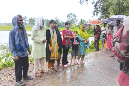 লালমনিরহাটের পাটগ্রাম সীমান্ত দিয়ে আবারও সাতজনকে পুশইন করেছে ভারতীয় সীমান্ত রক্ষী বাহিনী বিএসএফ। (২৪ জুন) মঙ্গলবার ভোররাতে বাউরা ইউনিয়নের হোসনাবাদ সীমান্ত দিয়ে এঘটনা ঘটে। পরে বর্ডার গার্ড বিজিবি সদস্যরা তাদের হেফাজতে নিয়ে থানা পুলিশের নিকট হস্তান্তর করে। বিজিবি পুলিশ ও স্থানীয়রা জানায় হোসনাবাদ সীমান্তের ৮৮২ নম্বর মেইন পিলারের ২ নম্বর সাব পিলারের নিকট দিয়ে মঙ্গলবার ভোররাতে ভারতের কোচবিহার জেলার ১৫৭ বিএসএফ ব্যাটালিয়নের মহেশমারী ক্যাম্পের বিএসএফ সদস্যরা সাতজনকে বাংলাদেশে পুশইন করে। এদের মধ্যে তিনজন শিশু, দুইজন পুরুষ ও দুইজন নারী রয়েছে। খবর পেয়ে বাউরা নবীনগর বিজিবি ক্যাম্পের সদস্যরা স্থানীয় গ্রামবাসীর সহায়তায় পুশইনকৃত নারী, শিশু, পুরুষদের আটক করে খারিজা জোংড়া এলাকার একটি বিদ্যালয়ে আটকে রাখে। পরে বিজিবি মঙ্গলবার দুপরে তাদের থানা পুলিশের নিকট হস্তান্তর করে। যাদের পুশইন করা হয়েছে তারা হল মৃত আব্দুর রহিমের ছেলে মো. কাওসার(৭০) তার ভাই মো. খুরশিদ(৫০) কাওসারের স্ত্রী মুন্নী খাতুন(৬০) খুরশিদের স্ত্রী তারা বেগম(৪৫) তাদের মেয়ে সানিয়া(১৭) রাজিয়া(১৫) ও আমেনা(৮) এরা খুলনার মেট্রোপলিটন, হাউজিং বাজার এলাকার খালিশপুর থানার বাসিন্দা বলে প্রাথমিক ভাবে পুলিশ জানিয়েছে। পাটগ্রাম থানার ওসি মিজানুর রহমান বিষয়টি নিশ্চিত করে জানান পুশইনকৃতদের নাগরিকত্ব খতিয়ে দেখা হচ্ছে। তাদের পরিবারের সাথে যোগাযোগ করা হচ্ছে। নিশ্চিত হলে তাদের নিকট হস্তান্তর করা হবে।