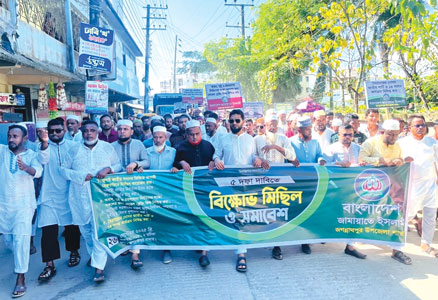 বাংলাদেশ খেলাফত মজলিসের কেন্দ্রীয় নায়েবে আমীর সাবেক সংসদ সদস্য বর্ষীয়ান রাজনীতিবিদ এডভোকেট মাওলানা শাহীনুর পাশা চৌধুরী বলেছেন, বাংলাদেশ আজ চরম সংকটকাল অতিক্রম করছে, প্রতিশ্রুত সংস্কারের কোন কাঙ্খিত অগ্রগতি নেই, পতিত স্বৈরাচারের বিচার দৃশ্যমান হয়নি, জুলাই-আগষ্ট বিপ্লবে হাজারো ছাত্র জনতার রক্তস্নাত দেশের স্বাধীনতা-স্বর্ভৌমোত্ব আজ ক্রান্তিলগ্নে। দুঃখের সাথে বলতে হয় ছাত্র জনতার বিপ্লবের মাধ্যমে গঠিত সরকারের বিরুদ্ধে আজ আমাদেরকে ৫ দফা দাবী নিয়ে রাজপথে নামতে হচ্ছে, অবিলম্বে বাংলাদেশ খেলাফত মজলিস ঘোষিত ৫দফা দাবি বাস্তবায়ন করুন। অন্যথায় আমরা কঠোর কর্মসূচি গ্রহণ করতে বাধ্য হব। বাংলাদেশ খেলাফত মজলিস সুনামগঞ্জের জগন্নাথপুর উপজেলা শাখার উদ্যোগে কেন্দ্র ঘোষিত ৫ দফা বাস্তবায়নের দাবীতে শুক্রবার (২৬ সেপ্টেম্বর) বাদ জুমা জগন্নাথপুর পৌর পয়েন্টে বিক্ষোভ মিছিল পূর্ব সমাবেশে প্রধান অতিথির বক্তব্যে উপরোক্ত কথা গুলো বলেন। উপজেলা সভাপতি মাওলানা আব্দুল মুনঈম শাহিন কামালীর সভাপতিত্বে ও সাধারণ সম্পাদক মাওলানা সাইফুর রহমান সাজাওয়ারের পরিচালনায় অনুষ্ঠিত সমাবেশে বিশেষ অতিথির বক্তব্য রাখেন দলের সুনামগঞ্জ জেলার উপদেষ্টা মাওলানা সৈয়দ আমিরুল ইসলাম, সাবেক সহ সভাপতি মাওলানা নুরুল আলম খান জাহাঙ্গীর, সুনামগঞ্জ জেলা বাংলাদেশ খেলাফত মজলিসের সাধারণ সম্পাদক জননেতা হাফিজ সৈয়দ জয়নুল ইসলাম। বক্তব্য রাখেন উপজেলা সহ সভাপতি মাওলানা নুরুজ্জামান, মুফতি আকমল হুসাইন, মাওলানা সৈয়দ সানাওয়ার আলী, মাওলানা উমর ফারুক, জগন্নাথপুর পৌর শাখার আহবায়ক মাওলানা রিয়াজ উদ্দিন রাজু, উপজেলা শাখার সহ সাধারণ সম্পাদক মাওলানা তারেক আহমদ, মাওলানা মাসরুর আহমদ খান, মাওলানা সুহেল আমীন, বাংলাদেশ খেলাফত শ্রমিক মজলিস জগন্নাথপুর উপজেলা সেক্রেটারি ওলিউর রহমান চান মিয়া, বাংলাদেশ খেলাফত মজলিস জগন্নাথপুর উপজেলা সাংগঠনিক সম্পাদক মাওলানা ফজলে রাব্বি মারুফ, সহ সাংগঠনিক সম্পাদক হা. মাওলানা মাহফুজুল আলম শামরান, প্রশিক্ষণ সম্পাদক মাওলানা ফজলুর রহমান, অফিস সম্পাদক মাওলানা সৈয়দ শামীম আহমদ, বাংলাদেশ খেলাফত যুব মজলিস জগন্নাথপুর উপজেলা শাখার সংগঠন বিভাগ সম্পাদক মাওলানা আতাউর রহমান, বাংলাদেশ খেলাফত ছাত্র মজলিস জগন্নাথপুর উপজেলা সভাপতি হাফিজ শায়খ আহমদ মামুন, বাংলাদেশ খেলাফত মজলিস চিলাউড়া-হলদিপুর ইউনিয়ন শাখার সাবেক সাধারণ সম্পাদক মাওলানা ইসলাম উদ্দিন, আশারকান্দী ইউনিয়ন সাধারণ সম্পাদক মাওলানা শফিকুল ইসলাম প্রমুখ। শুরুতে পবিত্র কোরআন তেলাওয়াত করেন কলকলিয়া ইউনিয়ন শাখার সহ সাংগঠনিক সম্পাদক মাওলানা নুরুল ইসলাম।