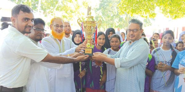 কুড়িগ্রামের উলিপুরে ৫২তম গ্রীষ্মকালীন জাতীয় ক্রীড়া প্রতিযোগিতায় চ্যাম্পিয়ন হয়েছে হযরত ফাতিমা (রাঃ) পৌর বালিকা উচ্চ বিদ্যালয় এ্যন্ড কলেজ। এই ক্রীড়া প্রতিযোগিতা উপজেলা পর্যায়ে সোমবার (২২ সেপ্টেম্বর) থেকে শুরু হয়ে বুধবার (২৪ সেপ্টেম্বর) পর্যন্ত অনুষ্ঠিত হয়। প্রতিযোগিতা শেষে বিজয়ী শিক্ষার্থীরা ট্রফি নিয়ে নিজ শিক্ষা প্রতিষ্ঠানে এসে আনন্দ উল্যাসে মেতে উঠে। উপজেলা পর্যায়ে ৫টি শিক্ষা প্রতিষ্ঠানের মেয়েরা ফুটবল, হ্যান্ডবল ও কাবাডি খেলায় অংশ গ্রহণ করে উপজেলা পর্যায়ে চ্যাম্পিয়ন হওয়ার গৌরব অর্জন করে জেলা পর্যায়ে খেলার সুযোগ লাভ করে। পড়াশোনার পাশাপাশি ক্রীড়া প্রতিযোগিতায় অংশগ্রহণ করে বিজয়ী হতে পেরে তারা উল্লাসে মেতে উঠেছে। উপজেলার হযরত ফাতিমা (রাঃ) পৌর বালিকা উচ্চ বিদ্যালয় এন্ড কলেজের মেয়েদের মধ্যে লিলুফা, জুই, বর্ণ, মিতু, আখি মনি, সাদিয়া, আমিনা, মিলা, ফারজানা, ফারহানা, জান্নাতি, হিমু, জিমু, আখি খাতুন, প্রমিতা, ছাবিনা, নাসরিন, হাবিবা সহ অন্যান্য অংশগ্রহণকারী শিক্ষার্থীরা বলেন, আমাদের বিদ্যালয়ে পড়াশোনার পাশাপাশি নিয়মিত বিভিন্ন ধরনের খেলাধুলার অনুশীলন করা হয়। ফলে আমরা আজ উপজেলা পর্যায়ে চ্যাম্পিয়ন হতে পেয়েছি। জেলা পর্যায়েও চ্যাম্পিয়ন হবেন বলে তারা আশা করেন। অত্র প্রতিষ্ঠানের শরীরর্চ্চা শিক্ষক আসাদুজ্জামান (নওয়াব) বলেন, আমাদের প্রতিষ্ঠানে শিক্ষার্থীদের নিয়ে ধারাবাহিক অনুশীলনের কারণেই এ সফলতা। অত্র প্রতিষ্ঠানের অধ্যক্ষ হাফিজ রুহুল আমীন বলেন, ৫২তম গ্রীষ্মকালীন জাতীয় ক্রীড়া প্রতিযোগিতায় বিভিন্ন ইভেন্টে প্রতিযোগিতার মধ্যে ফুটবল, হ্যান্ডবল ও কাবাডি খেলায় আমার শিক্ষা প্রতিষ্ঠানের মেয়ারা উপজেলা পর্যায়ে চ্যাম্পিয়ন হয়ে জেলা পর্যায়ে খেলার সুযোগ পান। জেলা পর্যায়ে চ্যাম্পিয়ন হবে বলে আশা করেন তিনি। উপজেলা মাধ্যমিক শিক্ষা অফিসার আবু সাঈদ মোহাম্মদ আব্দুল ওয়াহিদ জানান, ৫২তম গ্রীষ্মকালীন জাতীয় ক্রীড়া প্রতিযোগিতায় চ্যাম্পিয়ন উপজেলা পর্যায়ে মাধ্যমিক পর্যায়ে ৫টি শিক্ষাপ্রতিষ্ঠানের মেয়েদের মধ্যে বিভিন্ন ইভেন্টে প্রতিযোগিতা হয়। তার মধ্যে ফুটবল, হ্যান্ডবল ও কাবাডি খেলায় হযরত ফাতিমা (রাঃ) পৌর বালিকা বিদ্যালয় এ্যন্ড কলেজের মেয়েরা উপজেলা পর্যায়ে চ্যম্পিয়ন হয়ে জেলা পর্যায়ে খেলার সুযোগ পান। উপজেলা পর্যায়ে বিজয়ী শিক্ষার্থীরা ট্রফি হাতে পেয়ে বিজয়ের উল্লাসে আনন্দে মেতে উঠে।