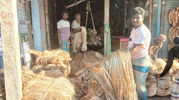 বাংলাদেশের “সোনালী আঁশ বা স্বর্ণসূত্র” পাট- এশিয়ার মধ্যে সবচেয়ে বেশি চাষ হয় এই দেশেই। আর বাংলাদেশের মধ্যে পাট উৎপাদনে শীর্ষে রয়েছে ফরিদপুর জেলা, বিশেষ করে নগরকান্দা ও সালথা উপজেলা। চলতি মৌসুমে এ দুই উপজেলায় পাট কাটা, জাগ দেওয়া ও আঁশ ছাড়ানোর কাজ আগেই শেষ করেছেন কৃষকরা। এখন চলছে বিক্রি ও বাজারে সরবরাহের ব্যস্ততা। কৃষকরা জানাচ্ছেন, এবার পাটের ফলন ভালো হয়েছে, দামও বেশ সন্তোষজনক -ফলে তারা লাভবান হয়েছেন। একই সঙ্গে পলিথিনের বিকল্প হিসেবে পাটজাত পণ্যের ব্যবহার বাড়ানোর দাবি তুলেছেন তারা। বিশেষজ্ঞদের মতে, পাটচাষ ও পাটজাত পণ্যের ব্যবহার বৃদ্ধি করলে পরিবেশবান্ধব অর্থনীতি গড়ে তোলা সম্ভব এবং পলিথিনজনিত দূষণও অনেকাংশে কমে আসবে। উপজেলার বিভিন্ন এলাকা ঘুরে দেখা গেছে, কৃষকরা ইতোমধ্যেই পাট শুকিয়ে বিক্রির জন্য স্থানীয় হাটবাজারে নসিমন ও ভ্যানে করে পাট নিয়ে যাচ্ছেন। ভালো দাম পাওয়ায় তারা বেশ আনন্দিত। নগরকান্দা উপজেলা কৃষি অফিস সূত্রে জানা যায়, এ উপজেলার মাটি পাট চাষের জন্য অত্যন্ত উপযোগী। ফলন ভালো হওয়ায় কৃষকরা দিন দিন এ চাষে আরও বেশি আগ্রহী হয়ে উঠছেন। শহীদনগর ইউনিয়নের ঈশ্বরদী গ্রামের পাটচাষি মাওলানা আব্দুল মান্নান বলেন, এই বছর পাঁচ বিঘা জমিতে পাট চাষ করেছি। খরচ হয়েছে প্রায় ৬০ হাজার টাকা। বিঘা প্রতি ফলন পেয়েছি ১২ থেকে ১৪ মণ। বিক্রি করেছি প্রায় ৪,২০০ টাকা দরে।