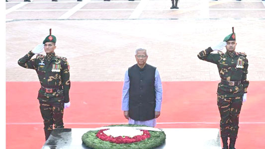 পুষ্পস্তবক অর্পণের পর জাতির শ্রেষ্ঠ সন্তানদের স্মৃতির প্রতি শ্রদ্ধা জানাতে সেখানে প্রধান উপদেষ্টা কিছুক্ষণ নীরবে দাঁড়িয়ে থাকেন।