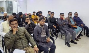 ডান থেকে বাম প্রবন্ধ পাঠ করেন গল্পকার ও রাষ্ট্রচিন্তক মুজতাহিদ ফারুকী, বক্তব্য রাখেন জাসাসের প্রতিষ্ঠাতা সেক্রেটারি ও মিডিয়া ব্যক্তিত্ব জনাব রেজাবুদ্দৌলা চৌধুরী ও লেখক ও সাংবাদিক হারুন ইবনে শাহাদাত