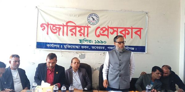 মুন্সীগঞ্জের গজারিয়ায় স্থানীয় সাংবাদিকদের সাথে মত বিনিময় করেছেন মুন্সীগঞ্জ-৩ আসনে বিএনপি মনোনীত প্রার্থী মো: কামরুজ্জামান রতন। মঙ্গলবার (২০ জানু.) সকাল ১১ ঘটিকায় উপজেলার ভবেরচর বাজারস্থ মুক্তিযুদ্ধ কমপ্লেক্স ভবনে গজারিয়া প্রেসক্লাবে এই মত বিনিময় সভা অনুষ্ঠিত হয়।গজারিয়া প্রেসক্লাবের সভাপতি মোহাম্মদ আরফিন এর সভাপতিত্বে ও সা: সম্পাদক শেখ নজরুল ইসলাম এর সঞ্চালনায় অন্যান্যদের মাঝে উপস্থিত ছিলেন ইউকে সাংবাদিক ইউনিয়ন এর সাংগঠনিক সম্পাদক ড.আতাউর রহমান, প্রেসক্লাবের সহ সভাপতি মোয়াজ্জেম হোসেন জুয়েল, আমিরুল ইসলাম নয়ন, যুগ্ম সম্পাদক আজিজুল হক পার্থ, সাংগঠনিক সম্পাদক আলমগীর হোসেন, সহ সাংগঠনিক সম্পাদক সোলায়মান শিকদার, কোষাধ্যক্ষ সায়মন শাহাদাত, দপ্তর সম্পাদক আল আমিন,তথ্য ও গবেষণা বিষয়ক সম্পাদক সাইদ হাসান আরফান, সিনিয়র সদস্য এস এম নাসির উদ্দিন, মহিউদ্দিন আহমেদ, মাসুদ রানা, আমজাদ হোসেন মোল্লা, ওসমান গনি, আরিফুল ইসলাম সাগর, রাসেল সরকার, খায়রুল আলম রিদয়, মাসুদ আহমেদ প্রমুখ। এ সাংবাদিকদের এক প্রশ্নের জবাবে কামরুজ্জামান রতন বলেন, দলের প্রবীণ ও অসুস্থ নেতা আব্দুল হাইকে দেখতে না যাওয়া নিয়ে যে মন্তব্য করা হয়েছে, তা অত্যন্ত দুঃখজনক ও অনাকাঙ্ক্ষিত। আমি উনাকে সম্মান করি, আমরা এক সাথে রাজনীতি করে আসছি, স্বতন্ত্রপ্রার্থী যে মিথ্যা বক্তব্য রাখেন তার প্রমানের দালাল আমার কাছে আছে, আমি চাই না তাঁরা অপমানিত হোক। এ সময় তিনি সবাইকে দায়িত্বশীল ও সংযত বক্তব্য প্রদান ও ঐক্যবদ্ধ থেকে গণতন্ত্র পুনরুদ্ধারের সক্রিয় থাকার আহবান জানান।