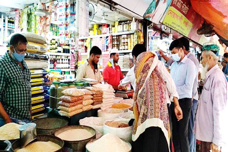 সোমবার থেকে দেশব্যাপী লকডাউন হতে পারে এ খবর শোনার পরই নিত্যপণ্যের দোকানে ভিড় করছেন মানুষ। শনিবার (৩ এপ্রিল) রাজধানীর কারওয়ান বাজার এলাকায় এমন চিত্র দেখা গেছে। নিত্যপণ্য কিনতে আসা মানুষজন বলছেন, লকডাউনের সময়সীমা বৃদ্ধি পেলে চাল-ডাল ও তেলসহ অন্যান্য প্রয়োজনীয় দ্রব্যের দাম বৃদ্ধি পেতে পারে। এ কারণে প্রয়োজনীয় নিত্যপণ্য একটু বেশি করে কিনে রাখছেন তারা। আবার কেউ বলছেন, সামনেই রমজান এই উপলক্ষে প্রয়োজনীয় জিনিস কিনে রাখছি।