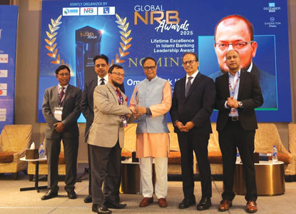 ইসলামী ব্যাংক বাংলাদেশ পিএলসি-এর ম্যানেজিং ডাইরেক্টর মোঃ ওমর ফারুক খাঁন ‘গ্লোবাল এনআরবি অ্যাওয়ার্ডস-২০২৫’-এ ‘লাইফটাইম এক্সিলেন্স ইন ইসলামী ব্যাংকিং লিডারশিপ অ্যাওয়ার্ড’ পেয়েছেন। ইসলামী ব্যাংকিং খাতে অসামান্য অবদান এবং গতিশীল নেতৃত্বের স্বীকৃতিস্বরূপ