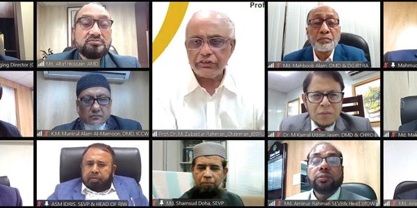 ইসলামী ব্যাংক বাংলাদেশ পিএলসি-এর চেয়ারম্যান প্রফেসর ড. এম জুবায়দুর রহমান- এর সাথে প্রধান কার্যালয়ের নির্বাহী, জোন ও শাখাপ্রধানদের মতবিনিময় সভা ২৪ জুলাই ভার্চুয়াল প্লাটফর্মে অনুষ্ঠিত হয়। অনুষ্ঠানে স্বাগত বক্তব্য দেন