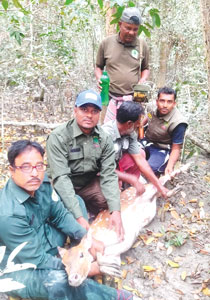 সুন্দরবনের গহীন অরণ্যে যমদূত হয়ে আসা শিকারিদের পেতে রাখা বিষাক্ত প্রাণঘাতী ফাঁদ থেকে অল্পের জন্য রক্ষা পেল একটি গর্ভবতী হরিণ। সোমবার (২ মার্চ) সকালে খুলনা রেঞ্জের হায়াতখালী বন টহল ফাঁড়ি